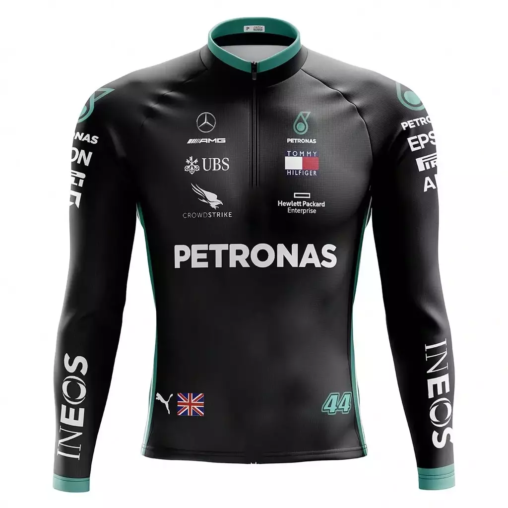 Camisa Cilismo Masculina Petronas Preta Com Bolsos Proteção UV50+